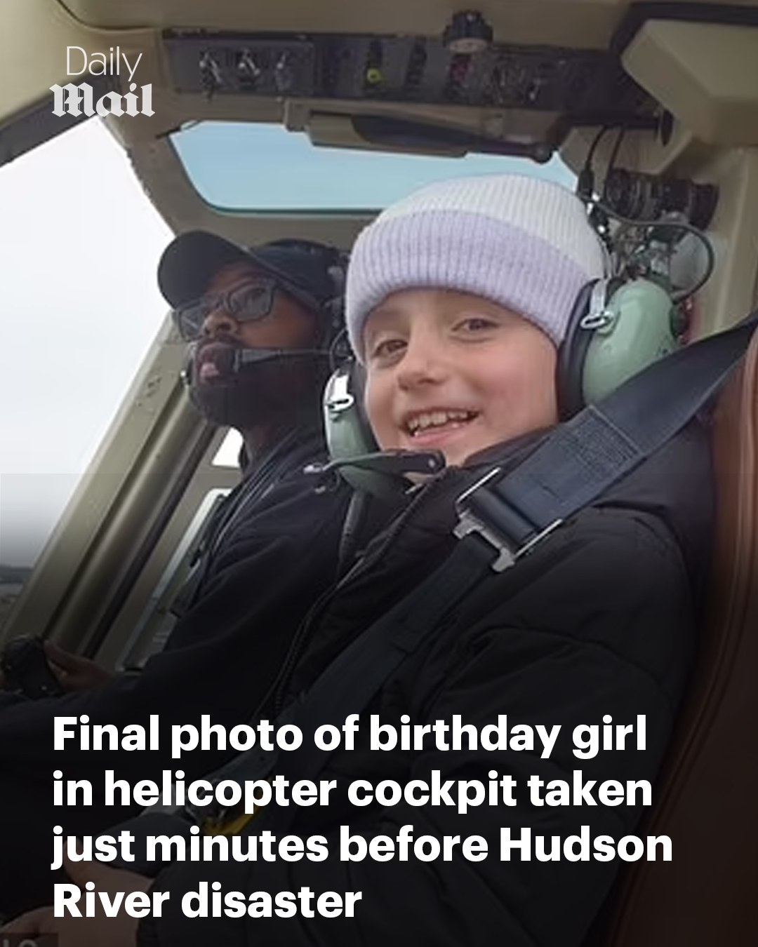Beaming at the camera and sitting proudly in the cockpit of a helicopter on the eve of her ninth birthday, a little girl excitedly waited to take off and embark on a tour over the iconic New York City skyline with her parents and young siblings on Thursday.