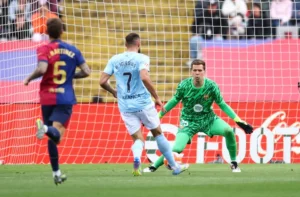 Barcelona took the lead in the 12th minute through Ferran Torres but conceded an equaliser three minutes later when goalkeeper Wojciech Szczesny misread a cross and allowed Borja Iglesias to score.