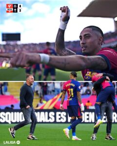 But Barca’s Dani Olmo and Raphinha soon netted four minutes apart to draw level at 3-3.