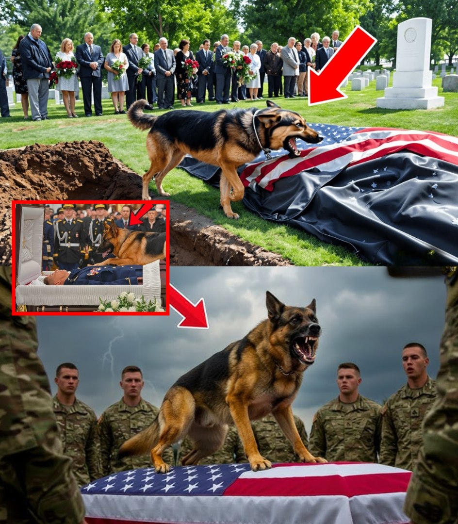 The German Shepherd K9 stood at the entrance of the chapel, his leash held firmly by the officer who had brought him. His chest rose and fell rapidly as though he sensed something was terribly wrong but couldn’t understand why. He sniffed the air, scanning the room, searching for a sign, an answer.