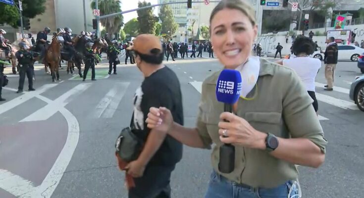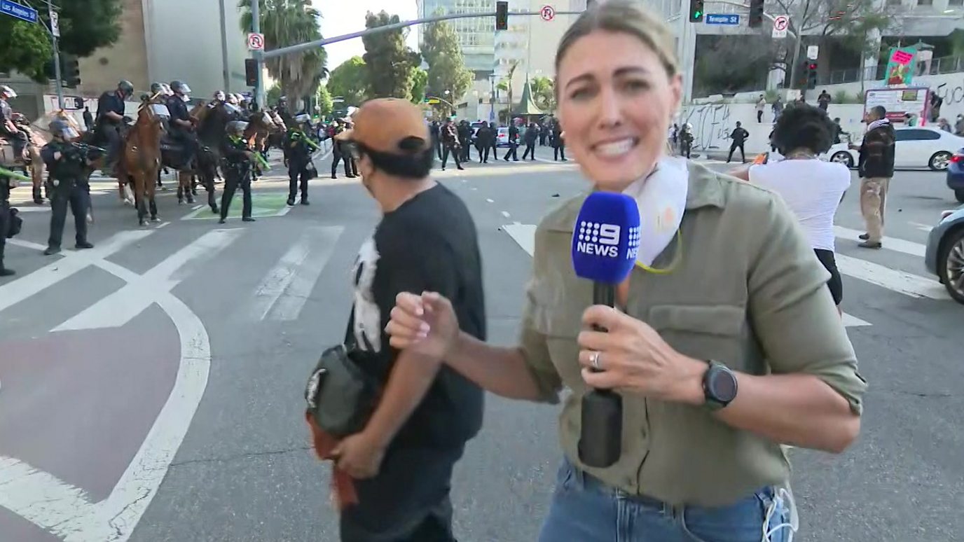An Australian foreign correspondent was hit by what was understood to be a rubber bullet while reporting from Los Angeles.