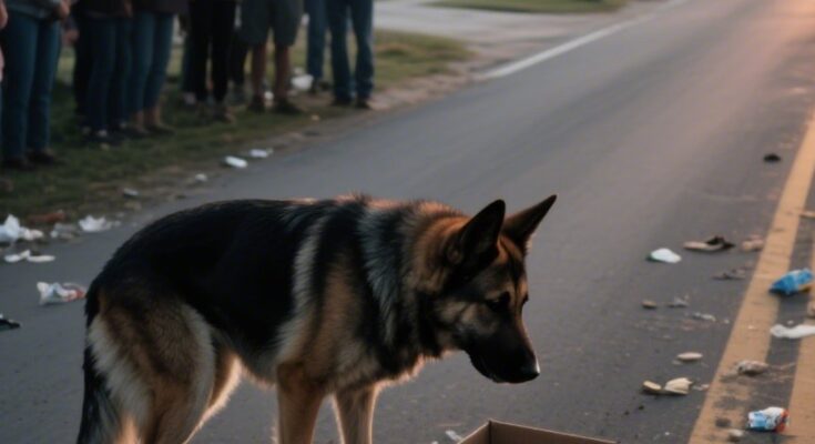 In the distance, near the edge of the highway, a figure lay motionless, curled beside what looked like a plastic bin. Grace squinted. A dog, big, soaked to the bone.