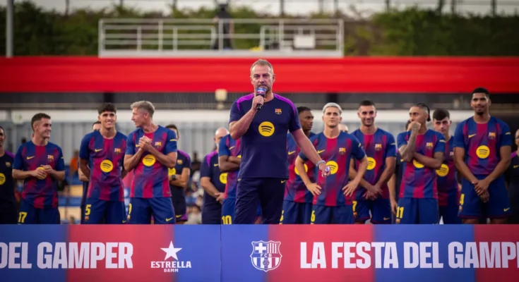 As tradition dictates, head coach Hansi Flick and captain Marc-André ter Stegen took the microphone to speak to the faithful. Flick, entering his second season at the helm, thanked the fans for their support last year. “We shared some very beautiful moments together” he said. “We want to keep this wonderful story going. We’ll work hard with no excuses. We want to win many trophies. Visca el Barça and visca Catalunya!”
