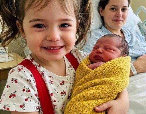 She sat cross-legged at the edge of the hospital bed, her little hands trembling as they gently cradled the bundle in her lap. My oldest, Lina—just four years old, dressed in her favorite red suspenders and crooked ponytail—looked like she was holding the universe. Her eyes sparkled with something beyond excitement. Reverence, maybe. Or… something I couldn’t place.