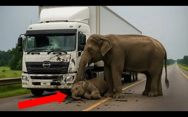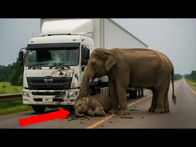 In the lush landscapes of Africa, where wildlife roams free and nature’s beauty is unparalleled, an unexpected incident occurred that left the world in awe. A baby elephant, playful and curious, wandered onto a busy road. In a tragic twist of fate, it was struck by an oncoming vehicle.
