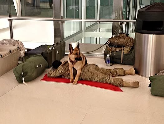 Today at the airport, amidst the familiar chaos of a thousand hurried goodbyes and joyous reunions, I witnessed a moment of such profound stillness and quiet devotion that it stopped me in my tracks. The air, thick with the scent of coffee, jet fuel, and a palpable sense of anticipation, was suddenly rendered mute by a scene of simple, raw beauty. In a corner of the crowded terminal, away from the bustling ticket counters and the endless river of rolling suitcases, was my husband, a soldier, lying on the floor, catching a much-needed rest after what I knew had been an impossibly long journey. And right on top of him, curled protectively on his chest, sat his loyal dog — a watchful guardian who refused to leave his side.