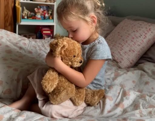 My little girl was cradling her stuffed bear like it was a secret-keeper, her tiny brow furrowed in concentration. She looked so serious and grown-up in that moment that it terrified me.