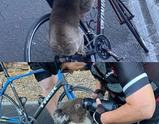 Instead of retreating into the trees, the koala walked directly toward her. Before she could react, he clambered up onto her bicycle, paws gripping the frame as if he had been waiting for her all along.