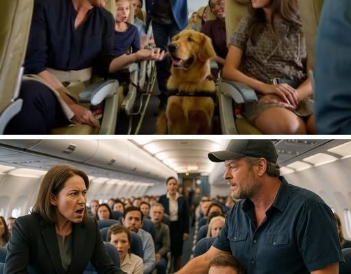 At that moment, Blake Shelton, country superstar and beloved television personality, quietly rose from his first-class seat. Shelton, who was flying to Los Angeles to promote his new album For Recreational Use Only, calmly approached the scene.