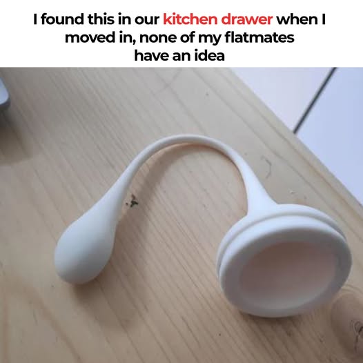 The user captioned their post: “I found this in our kitchen drawer when I moved in. None of my flatmates have an idea. The smaller part has some weight to it and it’s made from rubber or silicon. What is this thing?”