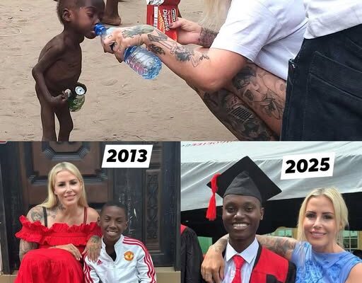 In 2025, the newest image once again brought tears to the eyes of millions: Hope, wearing his graduation gown, smiling brightly as he stood beside his “mother” Anja – the woman who had saved his life almost 20 years earlier. The starving, hopeless child had now become a university graduate, ready to open a new chapter in life.