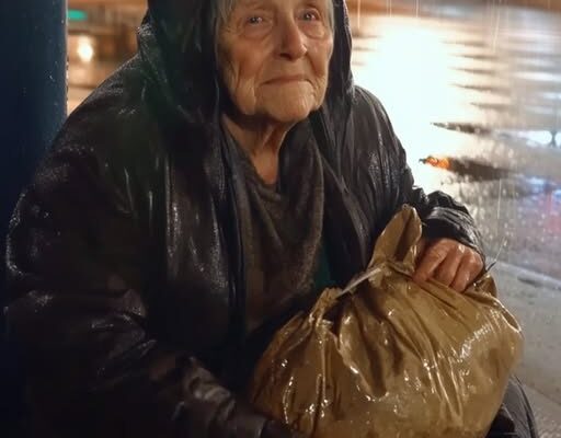 She sat hunched on the curb beneath a dying streetlamp, drenched, motionless. She was older, maybe in her late fifties or sixties, but something about her seemed off.
