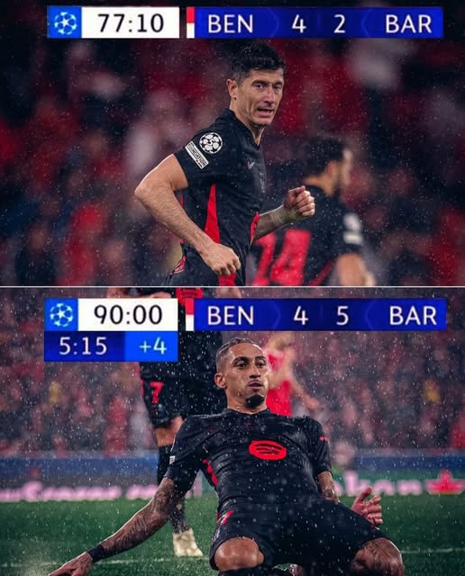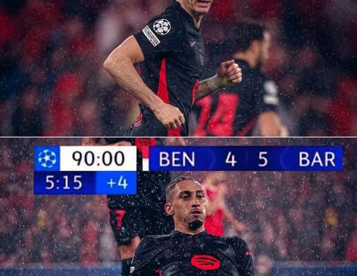 Barcelona’s Raphinha scored deep into stoppage time to hand his side a dramatic 5-4 comeback win at Benfica to seal a place in the top of the Champions League table on Tuesday. This came after a hat trick from Vangelis Pavlidis gave the hosts a two-goal half-time lead.